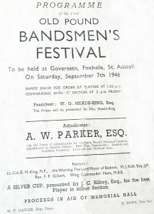 This contest was held at Goverseth, Foxhole and has been recalled as Old Pound Bandsmen’s Festival. Seemingly, it was held for the two years following the Second World War.
