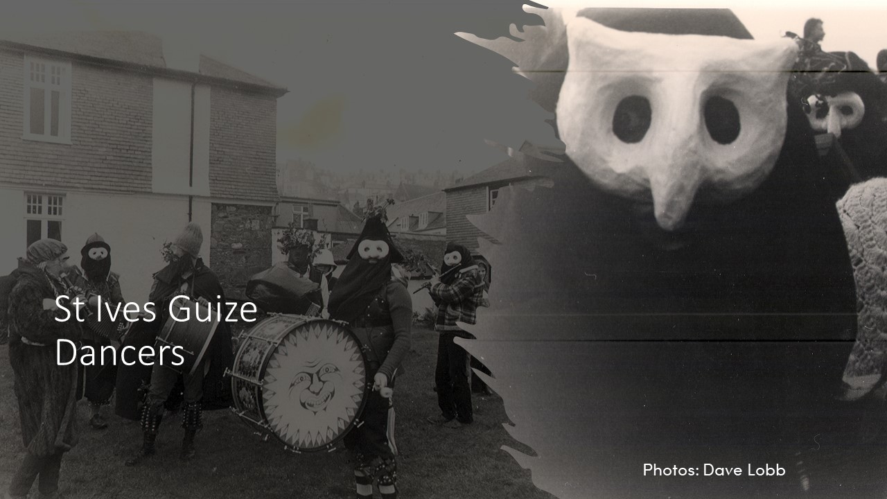 [13] Dave Lobb, a Cornish exile living in London whose father had been a Guize dancer, lead a revival of the St Ives Guize Dance between 1978 and 1993 was creative with disguising and costume.